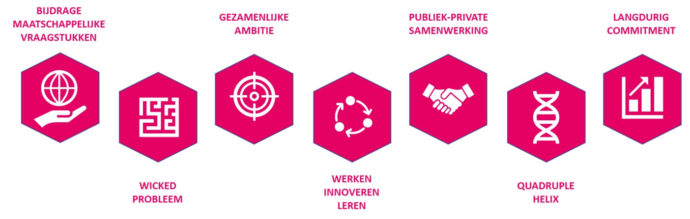 Binnen de learning community staat het combineren van Werken, Innoveren en Leren (WIL driehoek) centraal met als doel om tot oplossingen te komen. Dit gebeurt door middel van publiek-private samenwerking, waarbij de verschillende partijen hun kennis en expertise inzetten. De learning community werkt volgens het quadruple helix model, waarbij er wordt samengewerkt tussen verschillende sectoren, zoals onderwijs- en kennisinstellingen, bedrijfsleven, overheden en maatschappelijke organisaties.